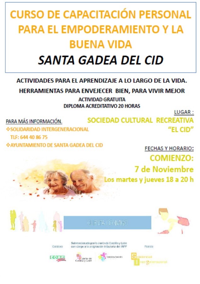 Taller para el envejecimiento activo dirigido a las personas mayores de las zonas rurales para mejorar su calidad de vida. Santa Gadea del Cid. Comienzo 7 noviembre.